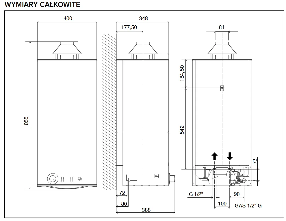 - Rodzaj zasilania: gaz ziemny GZ 50 (G20)
