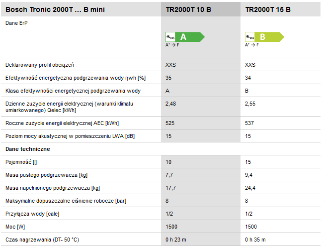 BOSCH Tronic TR2000 B 15L mini - Podgrzewacz, pojemnościowy, elektroniczny, nadumywalkowy