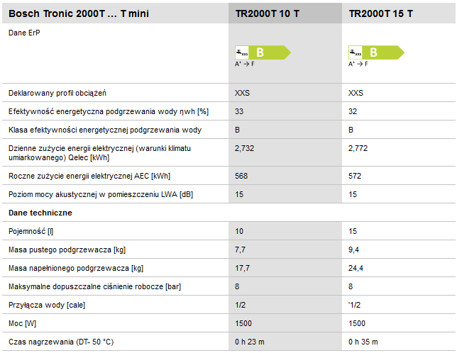 BOSCH Tronic TR2000 T 10L mini - Podgrzewacz, pojemnościowy, elektroniczny, podumywalkowy