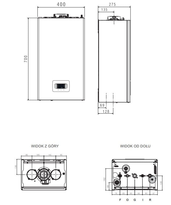 | Średnica przyłącza zasilania/powrotu c.o. oraz gazu: | 3/4'' |