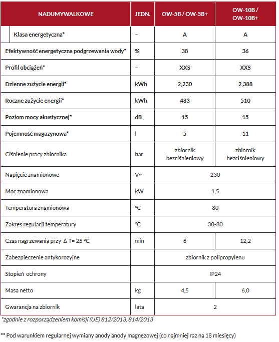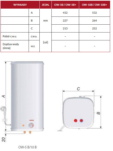 Współpracują ze specjalną armaturą. W modelach OW-5B+ i OW-10B+, baterie trójdrożne oferowane są w komplecie. Podgrzewacze zbiornikowe bezciśnieniowe stosuje się najczęściej w małej gastronomii, na działkach, kuchniach, łazienkach i toaletach oraz zakładach fryzjerskich i kosmetycznych.