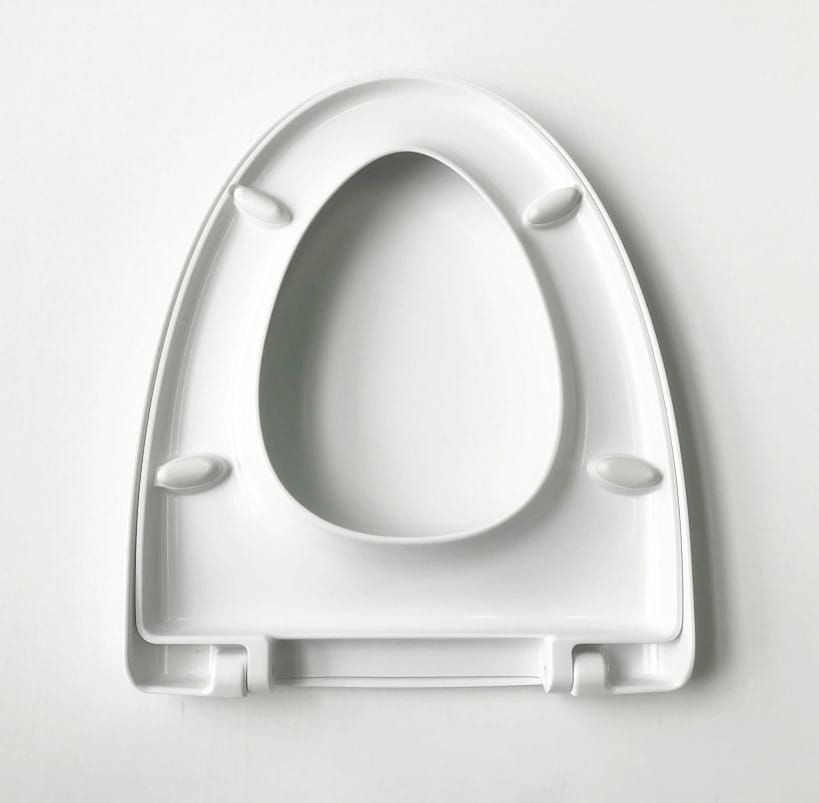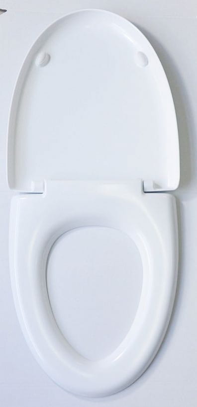 Deska wyposażona jest w plastikowe zawiasy z funkcją wolnego opadania.