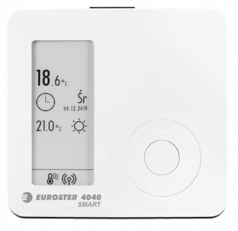 Euroster 4040 SMART, to bezprzewodowy, programowalny regulator temperatury, do wszystkich urządzeń grzewczych i klimatyzacyjnych z możliwością zdalnego sterowania smartfonem lub tabletem.