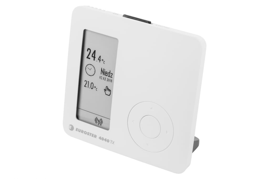Euroster 4010TXRX, to innowacyjny regulator temperatury do wszelkich urządzeń grzewczych i klimatyzacyjnych oprogramowany na wyświetlaczu e-paper. Prosty w obsłudze, umożliwia utrzymanie zadanej temperatury w pomieszczeniach mieszkalnych i użytkowych w zaprogramowanych przedziałach czasowych.