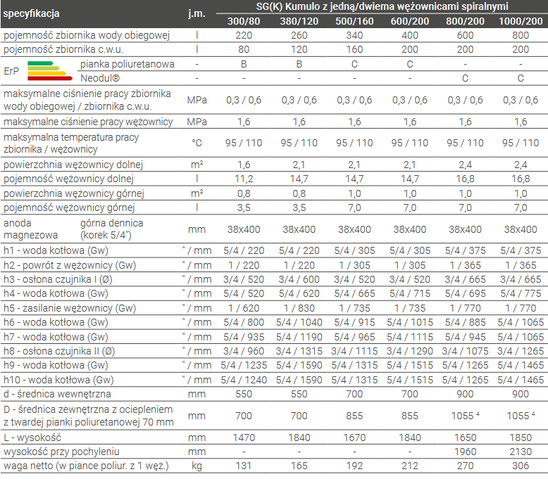 Zbiorniki akumulacji ciepła są dostosowane do wielu źródeł ciepła, takich jak kominki, kotły lub pompy ciepła. Istnieją różne typy tych zbiorników do wyboru: modele bez wężownicy, z wężownicą umieszczoną na zewnątrz lub wewnątrz zbiornika, a także modele z dwiema wężownicami spiralnymi, które mogą być używane do instalacji solarnych. Zbiorniki są izolowane za pomocą twardych pianek poliuretanowych lub demontowalnych miękkich pianek poliuretanowych. Istnieje również opcja zastosowania wężownicy miedzianej karbowanej o większej powierzchni wymiany ciepła w zbiornikach zewnętrznych. Dostępne są różne pojemności zbiorników, które można dostosować do indywidualnych potrzeb.