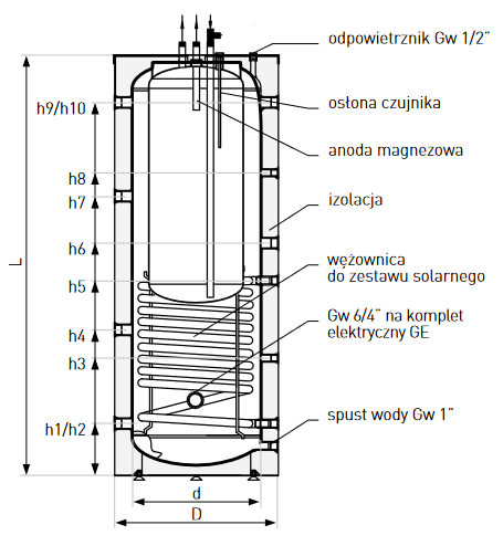 - Zabezpieczenie emalią ceramiczną EXTRA GLASS® i anodą.