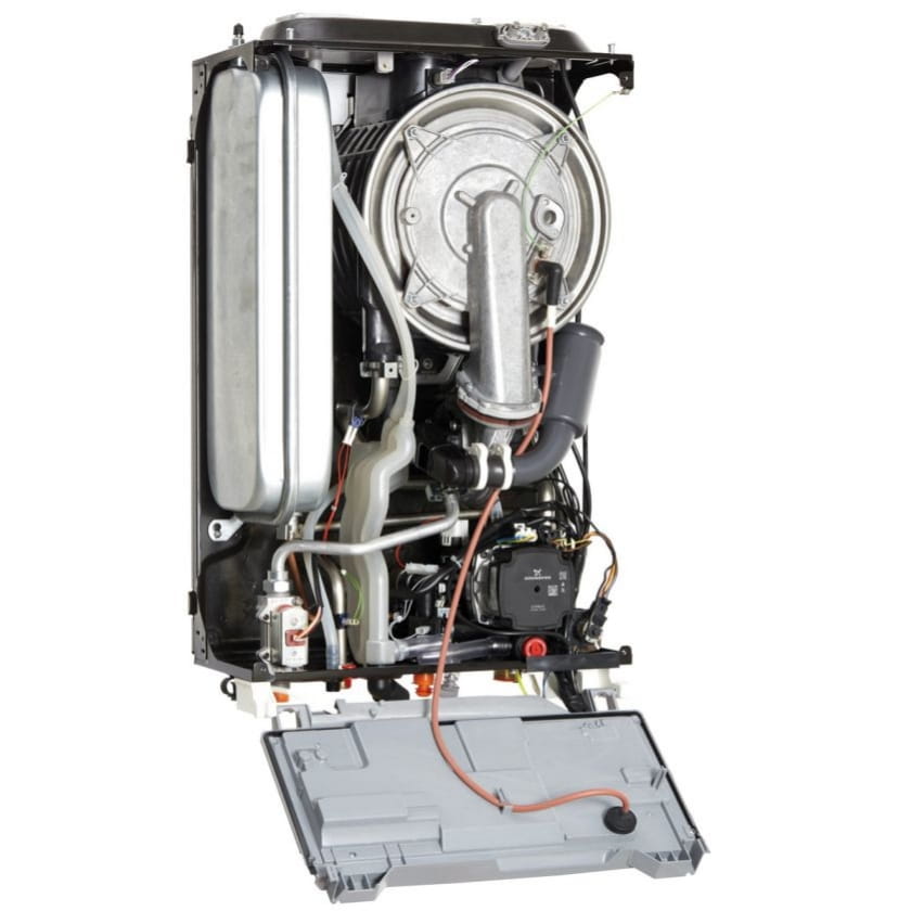 Kocioł gazowy kondensacyjny wiszący jednofunkcyjny (z możliwością podłączenia zewnętrznego zasobnika) z nowym wymiennikiem ze stali nierdzewnej w kompozytowej obudowie (w postaci jednorurowej wężownicy) oparty na sprawdzonym rozwiązaniu z poprzedniej generacji ale dodatkowo udoskonalony - co pozwala na osiągniecie sprawności 94%.