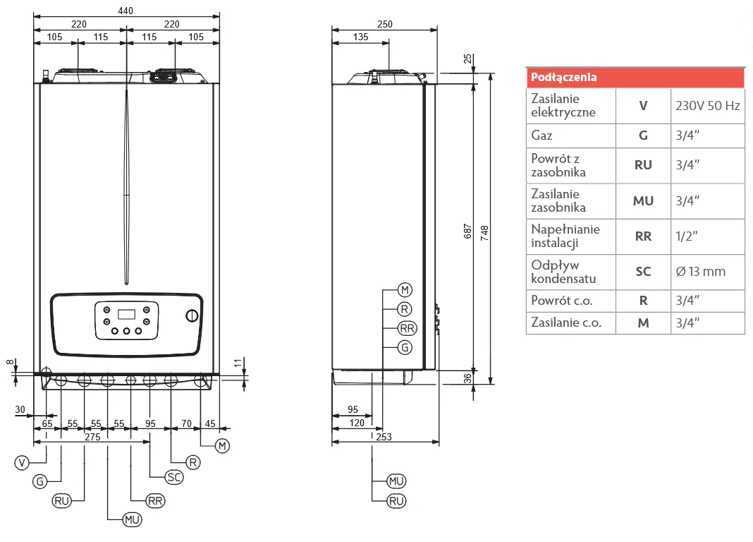 | Wymiary (wys/szer/głęb): | 748 x 440 x 250 mm |