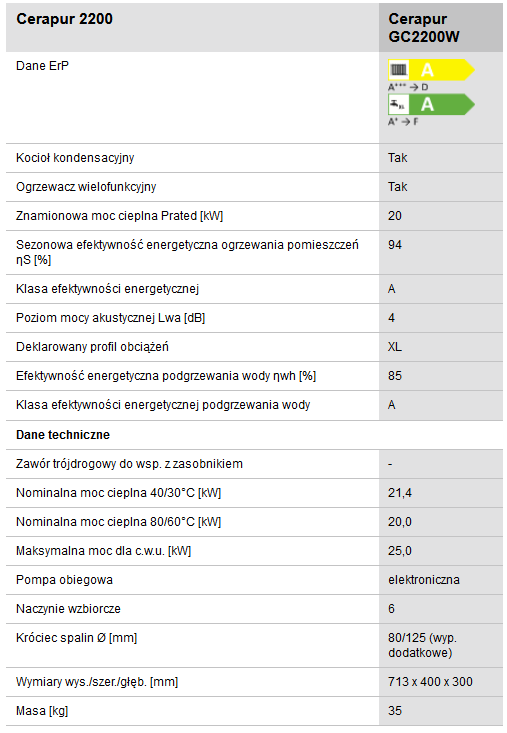 Cerapur GC2200W dwufunkcyjny kocioł kondensacyjny o mocy 4,8 ÷ 25 kW