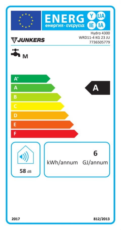 - Klasa efektywności energetycznej podgrzewania wody A dla deklarowanego profilu obciążenia M