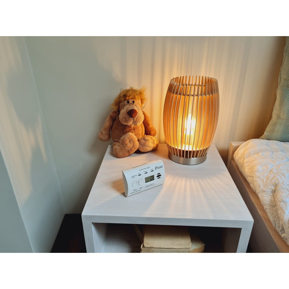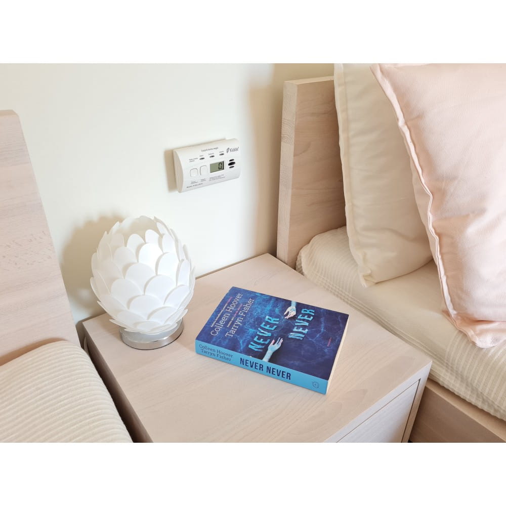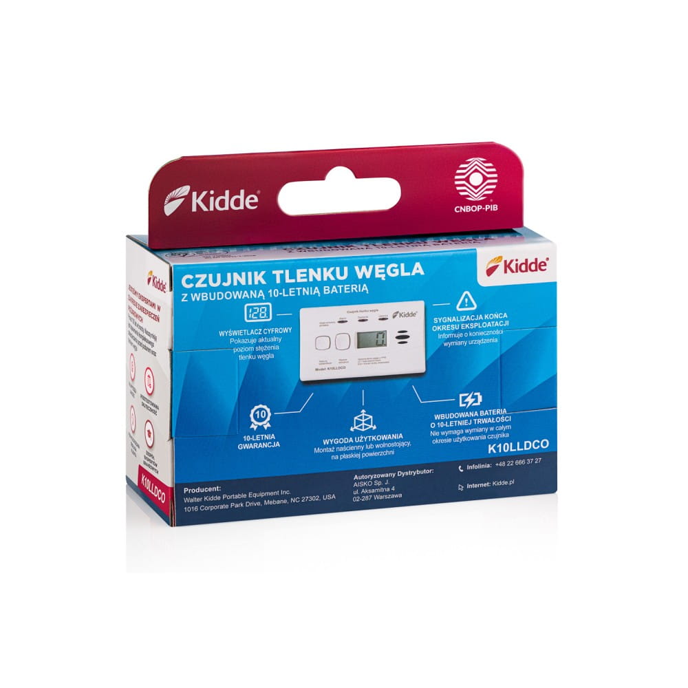 KIDDLE K10LLDCO to nowoczesny czujnik tlenku węgla wyposażony w sensor elektrochemiczny Kidde o 10-letniej żywotności oraz wbudowaną baterię, która nie wymaga wymiany przez cały okres użytkowania. Dzięki temu urządzenie działa niezależnie od sieci elektrycznej i może być łatwo zamontowane w dowolnym miejscu – na ścianie lub ustawione np. na szafce nocnej.