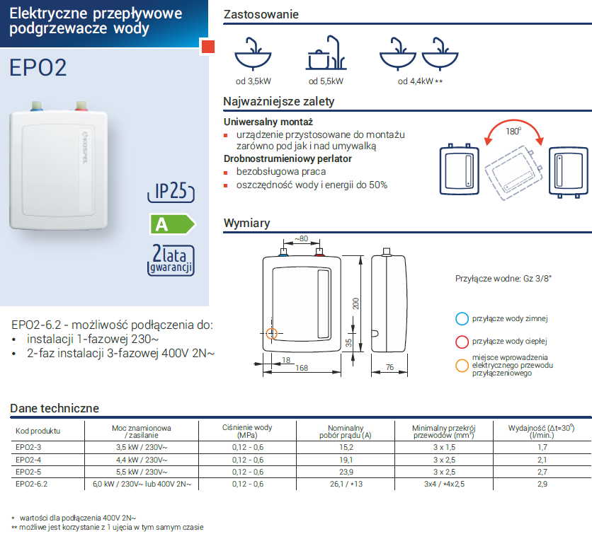 Kospel Amicus EPO2-6 moc 6 kW - Podgrzewacz przepływowy