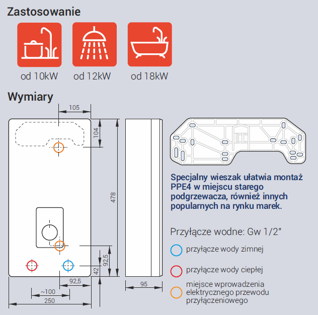 Kospel PPE4.B Basic 17/18/21/24 - Elektryczny przepływowy podgrzewacz wody PPE4.B-17/18/21/24.PL