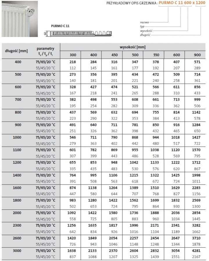 Purmo COMPACT C11 500x900 mm grzejnik płytowy z podłączeniem bocznym.
