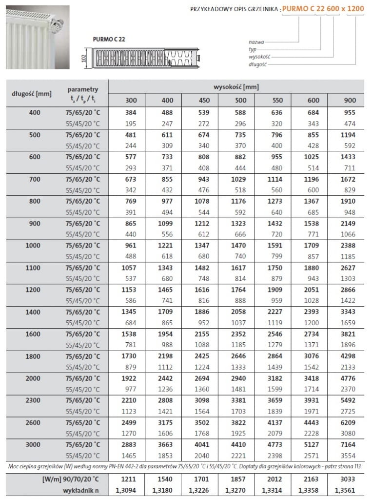 Purmo COMPACT C22 500x1100 mm grzejnik płytowy z podłączeniem bocznym.