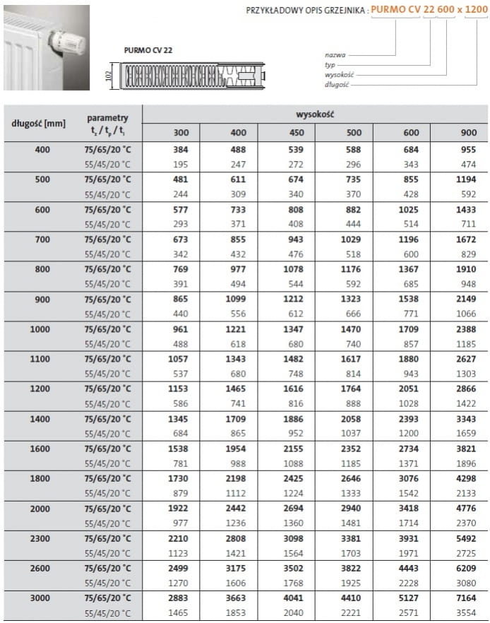 Purmo VENTIL COMPACT CV 22 600x900 mm grzejnik płytowy z podłączeniem dolnym.
