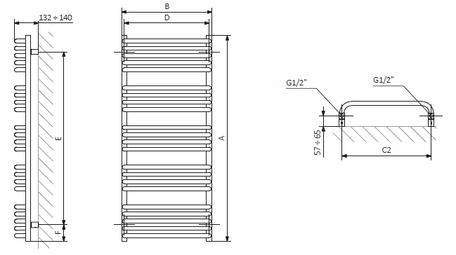 kolektory pionowe o przekroju kwadratu 30x30mm, profile poziome wygięte w kształt litery „C” – rura Ø 22mm. |