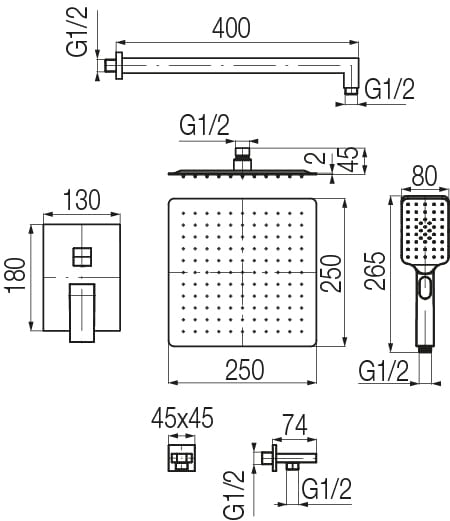 - głowicę prysznicową 250 x 250 x 2mm