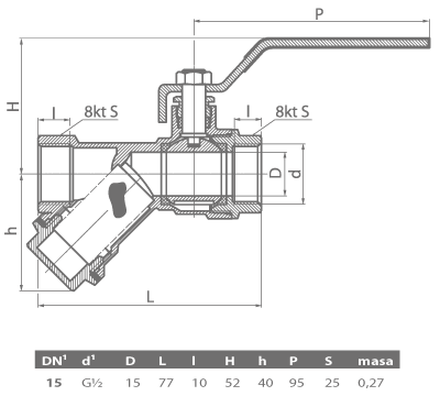 ZAWÓR wodny odcinający z FILTREM 1/2 cal DN 15